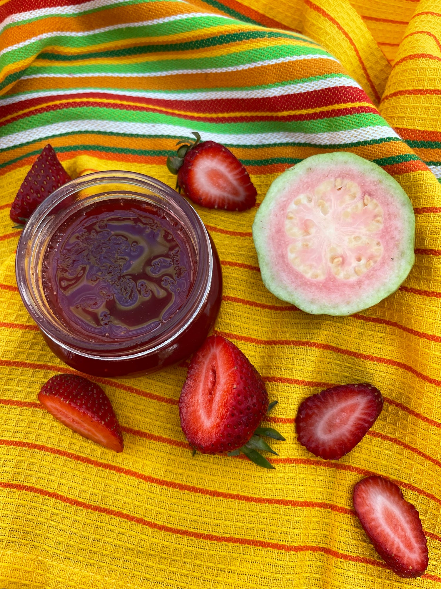 The Berry Guava Jam combines the sweetness of ripe mixed strawberries with tropical guava and a warm hint of ginger for a bold, flavorful spread. Rooted in Puerto Rican traditions, this jam pairs beautifully with cheeses, scones, or layered desserts.